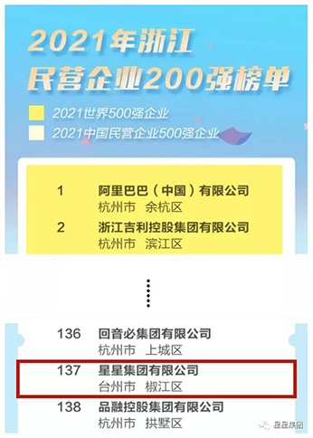 三連斬!星星集團實力入選“2021...