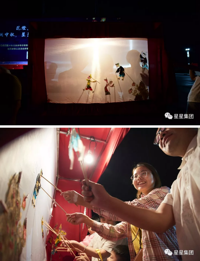 為了積極落實前階段省委宣傳部王四清部長調研星星時提出的關于文化分眾供給的指示精神,星星第十七屆文化藝術節結合公司當前實際,借中秋這一中國人珍視的傳統節日,在園區廣場為廣大員工送上了一場關乎花燈、泥人、臉譜、皮影戲的傳統文化盛宴。來自集團各單位不同層面的員工月下花燈、濟濟一堂。集團常務副總裁蔣亦標,黨委書記、副總裁陳華明、副總裁林海平、總裁助理王紹卓等幾位領導也都來到了活動現場,與廣大員工共話中秋。