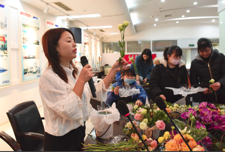 “人面桃花相映紅”,女人如花,自然也愛花,為了慶祝一年一度的“女神節(jié)”,星星集團(tuán)工會(huì)舉辦以“巧手插花·魅力巾幗”為主題的插花活動(dòng)。公司邀請了花藝師,給大家講授選花、裁剪、顏色搭配、造型等方面的插花技巧,并在現(xiàn)場做了生動(dòng)地演示。在花藝師的講解和指導(dǎo)下,活動(dòng)現(xiàn)場花香四溢。大家用自己靈巧的雙手,將原本普普通通的玫瑰、康乃馨、雛菊等多種花材,修剪、整枝,再根據(jù)不同的色彩、形狀有層次的搭配在一起。