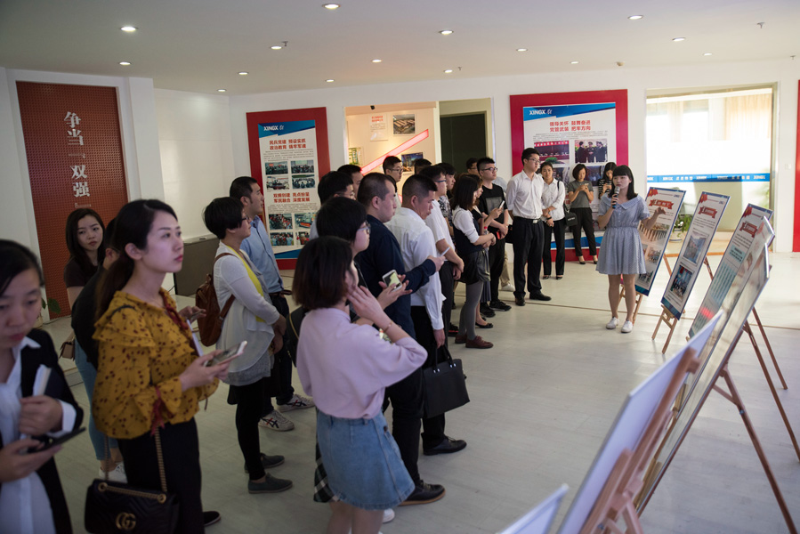 在星星集團(tuán)團(tuán)委班子成員的帶領(lǐng)下,觀摩團(tuán)一行來(lái)到了位于集團(tuán)總部三樓的黨群服務(wù)中心,在那里,團(tuán)委書(shū)記羅曉懿向各位代表講述了星星“黨建帶團(tuán)建”的各個(gè)模塊,并重點(diǎn)跟隨特制展板架,縱向講述了星星團(tuán)委從1998年的創(chuàng)建到目前所經(jīng)歷的三個(gè)階段及各階段相應(yīng)的作為,即,1995-1998的前期自發(fā)探索與初步創(chuàng)建;1999-2003的中期建立健全組織機(jī)制;2004至今的全面參與、系統(tǒng)建設(shè)階段;橫向地,她又從培育青年與服務(wù)青年兩個(gè)維度闡述了十大模塊的建設(shè)。